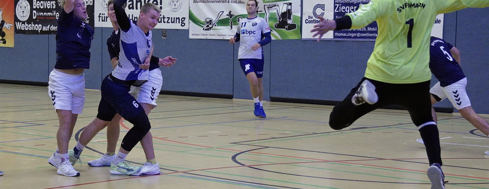 Was Gunnar besonders zufriedenstellte, war aber nicht das Ergebnis an sich, sondern die Art, wie es zustande kam. Denn: Das Spiel seiner Schützlinge trug eindeutig seine Handschrift. Unsere 1. Männermannschaft begeisterte mit Tempohandball, tollen Kombinationen, abgestimmten Laufwegen, vielen richtigen Entscheidungen nach Auslösehandlungen und einer guten Wurfeffizienz. Und vor allen Dingen: Mit Leidenschaft. 38 Treffer sprechen für sich. Wäre nicht der kleine Einbruch in der Schlussphase gewesen, wären auch die magische 40 erreicht worden. Highlights dieses Handballfeuerwerks gab es zuhauf: Zum Beispiel der lange Ball von Pierre, unserem Torhüter, über das ganze Feld auf den davongeeilten Conni, Connis perfekte Ballannahme kurz vor dem gegnerischen Kreis und sein sicherer Abschluss. Oder: Der überraschende Pass aus dem halblinken Rückraum (Jan?) auf den am Kreis wartenden Tom, der im Zuge einer Ablaufhandlung seine Spielmacherposition verlassen hatte und nun relativ frei am Kreis auftauchte.