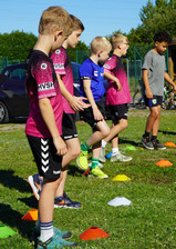 59 Jugendliche waren beim diesjährigen Sommercamp von Montag, dem 1. September, bis Freitag, dem 5. September, in der Zeit von jeweils 10.00 bis etwa 16.00 Uhr dabei. 59 junge Handballtalente aus unseren E-, D- und C-Jugendmannschaften. Eingeteilt in jeweils drei Gruppen wurden in der Halle Berliner Straße die Handballfähigkeiten gefestigt und erweitert, auf dem Beachhandballfeld in der Mercatorstraße Kraft, Ausdauer und Beweglichkeit sowie Pässe und Trickwürfe trainiert und im Gymnastikraum Koordination und Kreativität gefördert. Gruppen, die am Vormittag in der Berliner Straße trainiert hatten, waren nachmittags in der Oberstadt aktiv und umgekehrt. Für die jüngeren Handballtalente standen in der Berliner Halle z.B. die Themen ″Pässe in die Bewegung″ und ″2gg.1-Situationen″ auf dem Programm; für die Älteren z.B. ″Sprungwurf in die Tiefe″ und ″Binden von Gegenspielern″.