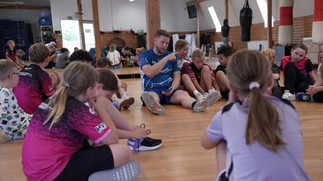 In Sachen Kreativität waren insbesondere die Jüngeren gefordert. So sollten sie an einem Tag einen kleinen Sketch kreieren und einstudieren. Das Stück sollte Bezug zum Handball haben. Es sollte entweder witzig sein oder es sollte eine Aktion oder Situation im Handball dargestellt werden, die besonders respektvoll und fair oder im Gegenteil: besonders respektlos und unfair ist. Ähnlich herausfordernd die Kreativitätsaufgabe am nächsten Tag. Hier galt es, ein Trikot zu entwerfen. Beide Aufgaben gingen die Kids mit großer Begeisterung an und ließen ihrer Fantasie freien Lauf.