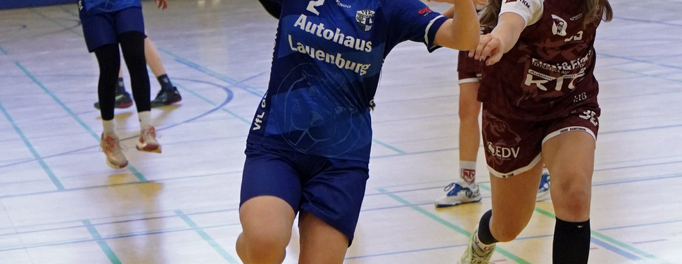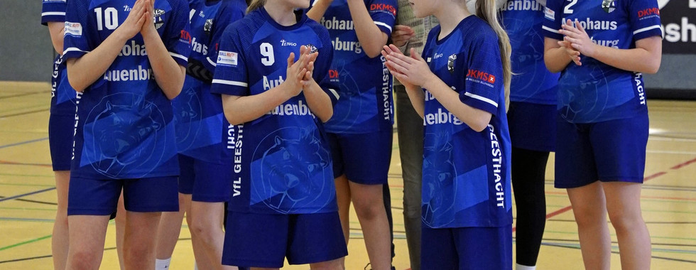 wJD / Eine Premiere: Obwohl der Kader unserer weiblichen D-Mannschaft mit elf Handballmädchen der Jahrgänge 2011 und 2012, den Jahrgängen der D-Jugend-Altersklasse dieser Saison, nur relativ dünn besetzt ist, wurde das Team in den bisherigen 12 Begegnungen nie mit Spielerinnen aus der E-Jugend ergänzt. Siebenmal waren alle elf dabei. Viermal trat man mit zehn Spielerinnen an und nur einmal bestritt man ein Spiel nur zu neunt. Niederlagen gab es bisher nur zweimal gegen Lauenburg, dem verlustpunktfreien Spitzenreiter der Kreisliga, sowie im Rückspiel in Aumühle. Mit 18.6 Punkten belegten die VfL-Mädchen am Sonntag vor dem Spiel gegen die 2. Mannschaft des TSV Bargteheide den dritten Tabellenplatz in der Kreisligastaffel, nach Minuspunkten punktgleich mit Aumühle auf Platz 2 und mit Schwarzenbek auf Platz 4. Gegen Bargteheide kam es nun zu einer Premiere: Weil zwei von den elf D-Mädchen verletzungs- und krankheitsbedingt fehlten, wurden mit Lucy, Leni und Mia erstmals drei E-Mädchen in einem Punktspiel eingesetzt. Trotzdem oder gerade deswegen kam das Team zu einem ungefährdeten 33:15-Erfolg gegen Bargteheide. Bereits nach vier Minuten führte die VfL-Sieben der Trainer Susi und Gunnar mit 6:1 und zur Pause lag man deutlich mit 19:9 in Front. Haupttorschützin war Enya mit 12 Torerfolgen, die bereits regelmäßig bei den C-Mädchen mittrainiert und mitspielt und auch dort zu den Leistungsträgern gehört. Shayma war 7-mal, Maxine 6-mal, Florine 4-mal und Julia 3-mal erfolgreich. Am lautesten wurde aber wohl der Treffer von Leni aus der E bejubelt, die in der 36. Minute das 32. Geesthachter Tor erzielte. Sieben von den elf D-Jahrgangsmädchen wechseln in der nächsten Saison altersbedingt in die C-Jugend und werden sicherlich auch dort eine gute Rolle spielen. Der Erfolg gegen Bargteheide war aber auch aus einem anderen Grund bemerkenswert: Er war an diesem Wochenende der einzige Sieg einer Geesthachter Handballmannschaft, sechsmal gab es Niederlagen und nur einmal beim Unentschieden unserer D2-Jungen einen weiteren Punktgewinn. (hws, 6.3.2024)